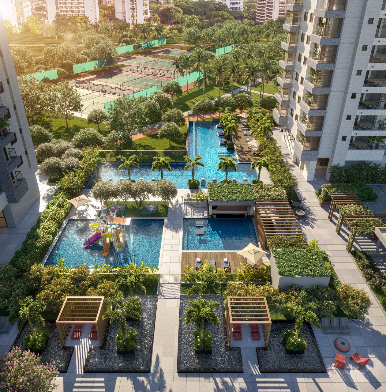 O padrão do Península deixa todos encantados com a estrutura e organização em um bairro totalmente planejado com quadras de tênis, piscinas, lagos, espaço para curtir com seu pet e familiares!